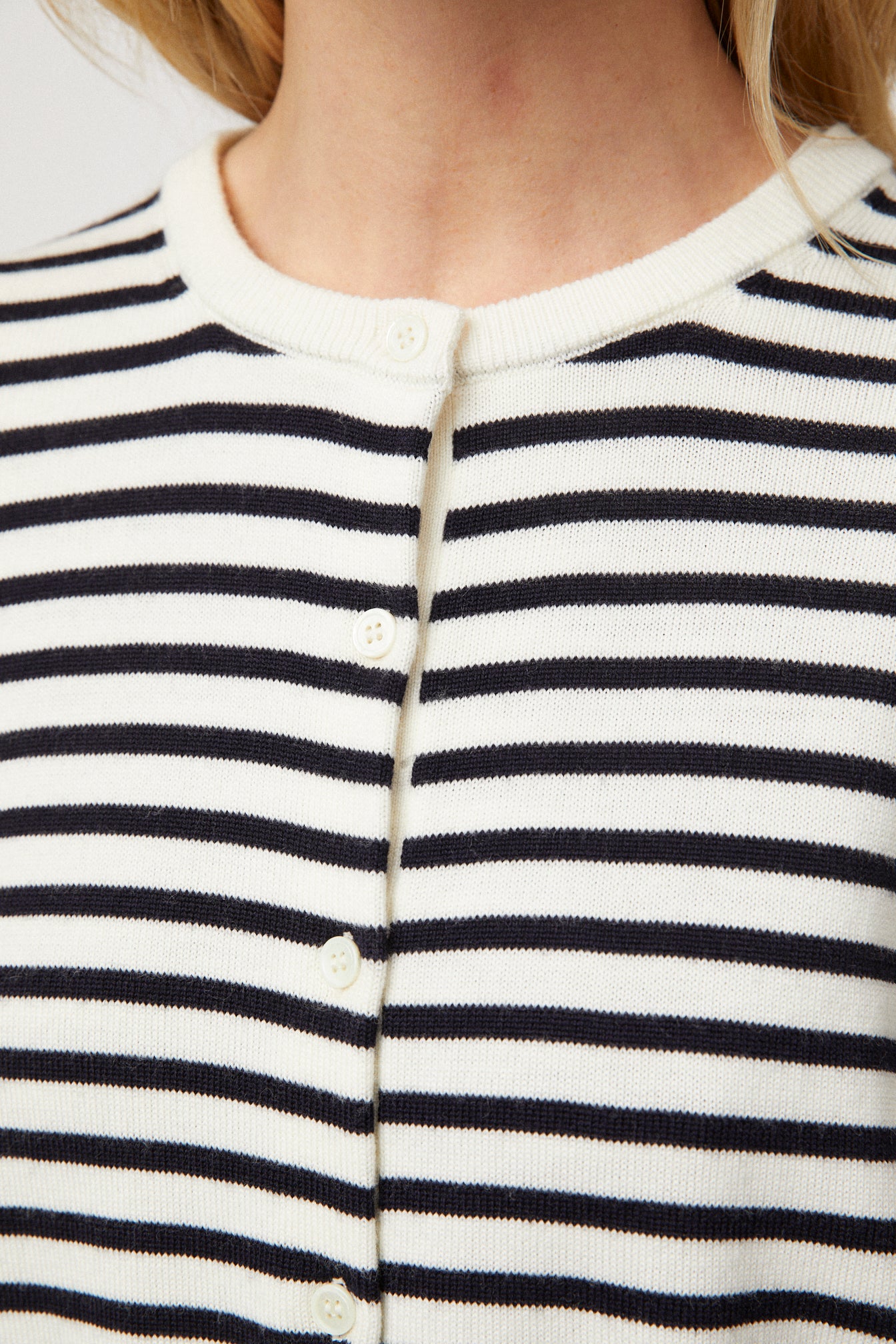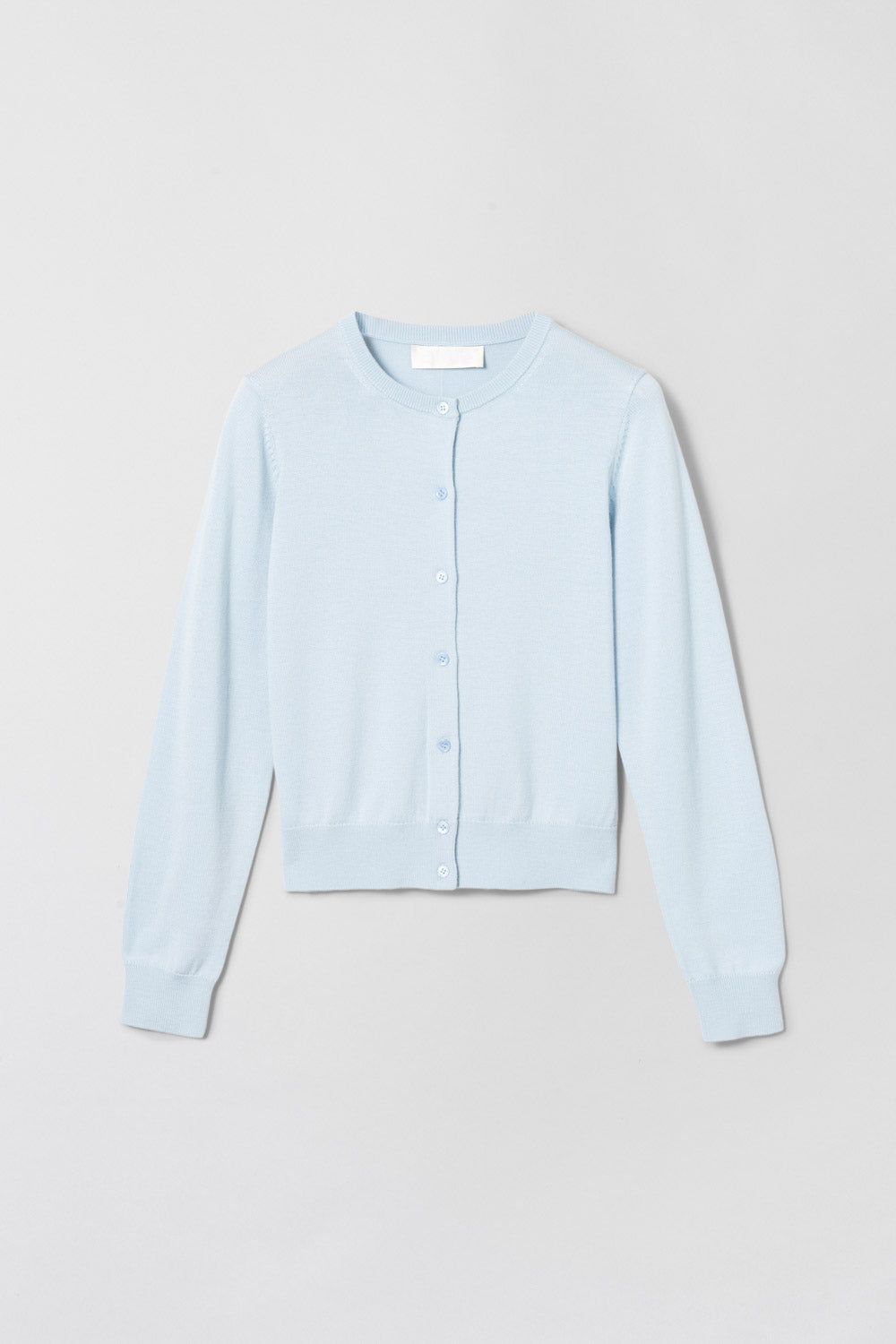 The FWSS Classic Merino Cardigan is cut from supersoft, lightweight merino wool. An elegant cardigan with a delicate crew neck, subtle button down front placket and fully fashioned details. The fit is slightly cropped, resting elegantly on the waist. Slip over the FWSS Classic Merino Tank for a complete look.