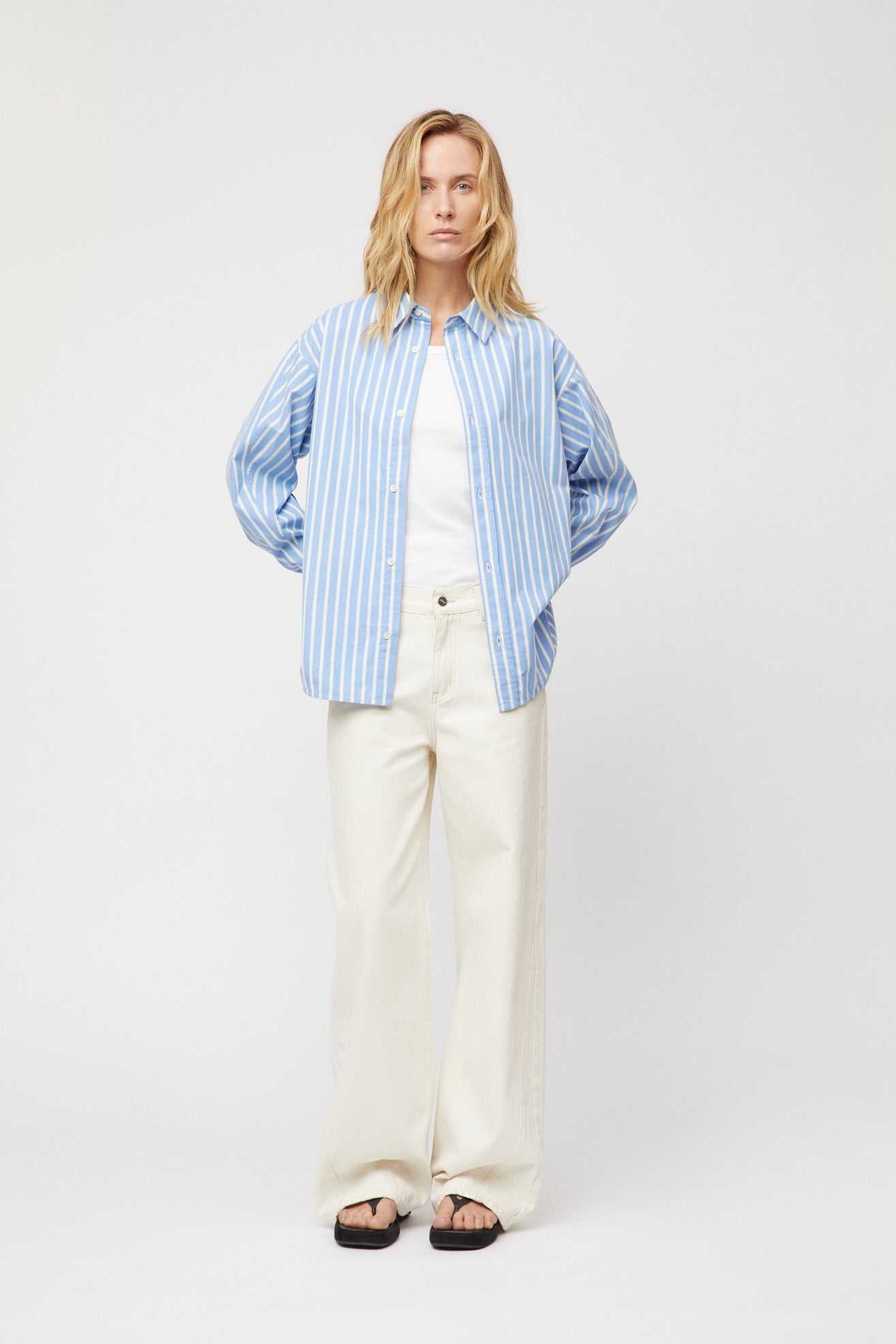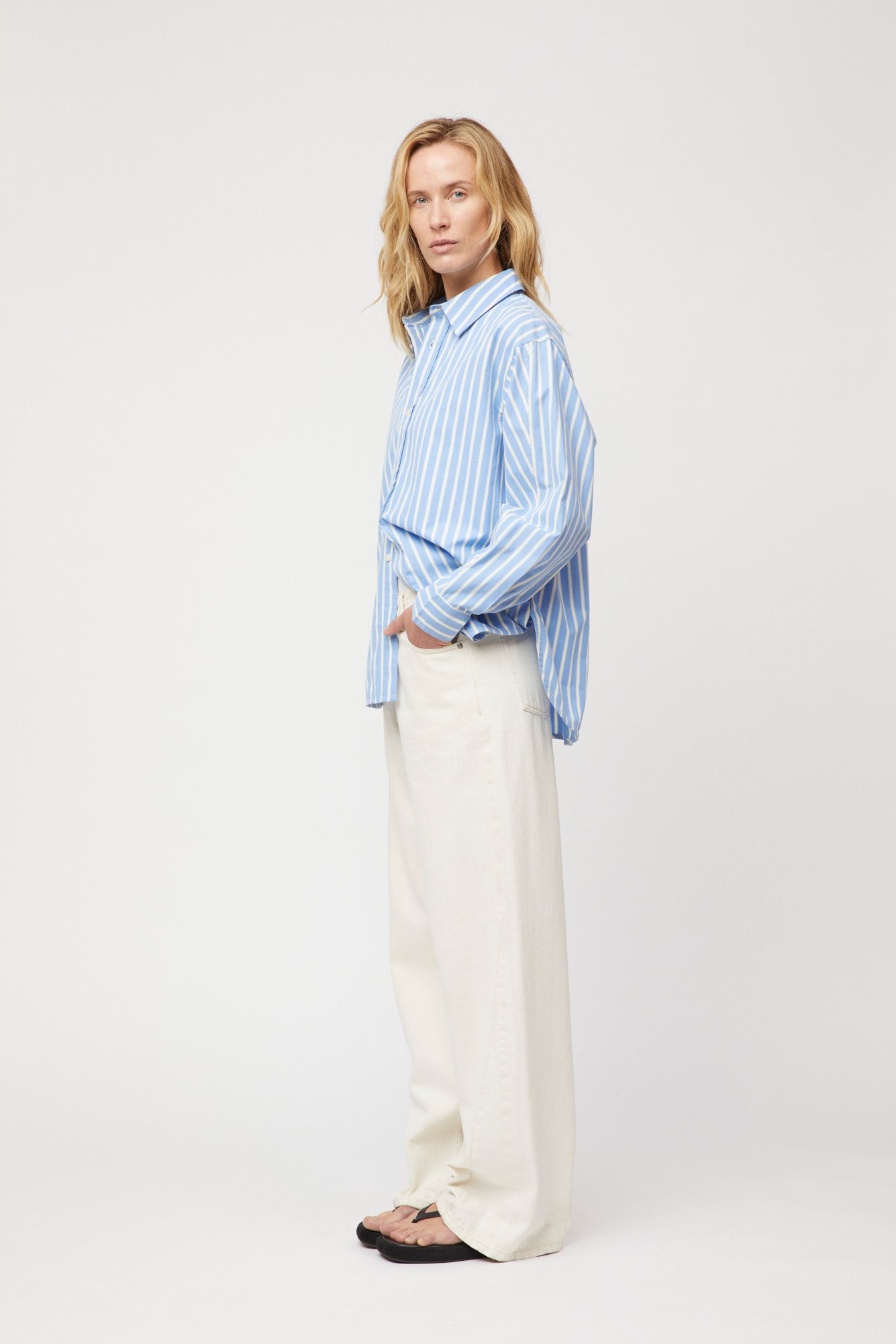 The FWSS Coastal Shirt is cut from high-quality tencel cotton fabric. This season's Coastal Shirt is based on the same design as Oxford Coastal Shirt, made in a timeless, slightly boxy silhouette. Featuring a button-down collar that provides a refined and polished look, this shirt is as comfortable as it is elegant. The crisp, clean lines and oversized fit make it suitable for various occasions, from business meetings to casual outings. An elevated style that effortlessly pairs with jeans or trousers, making it a versatile wardrobe staple.