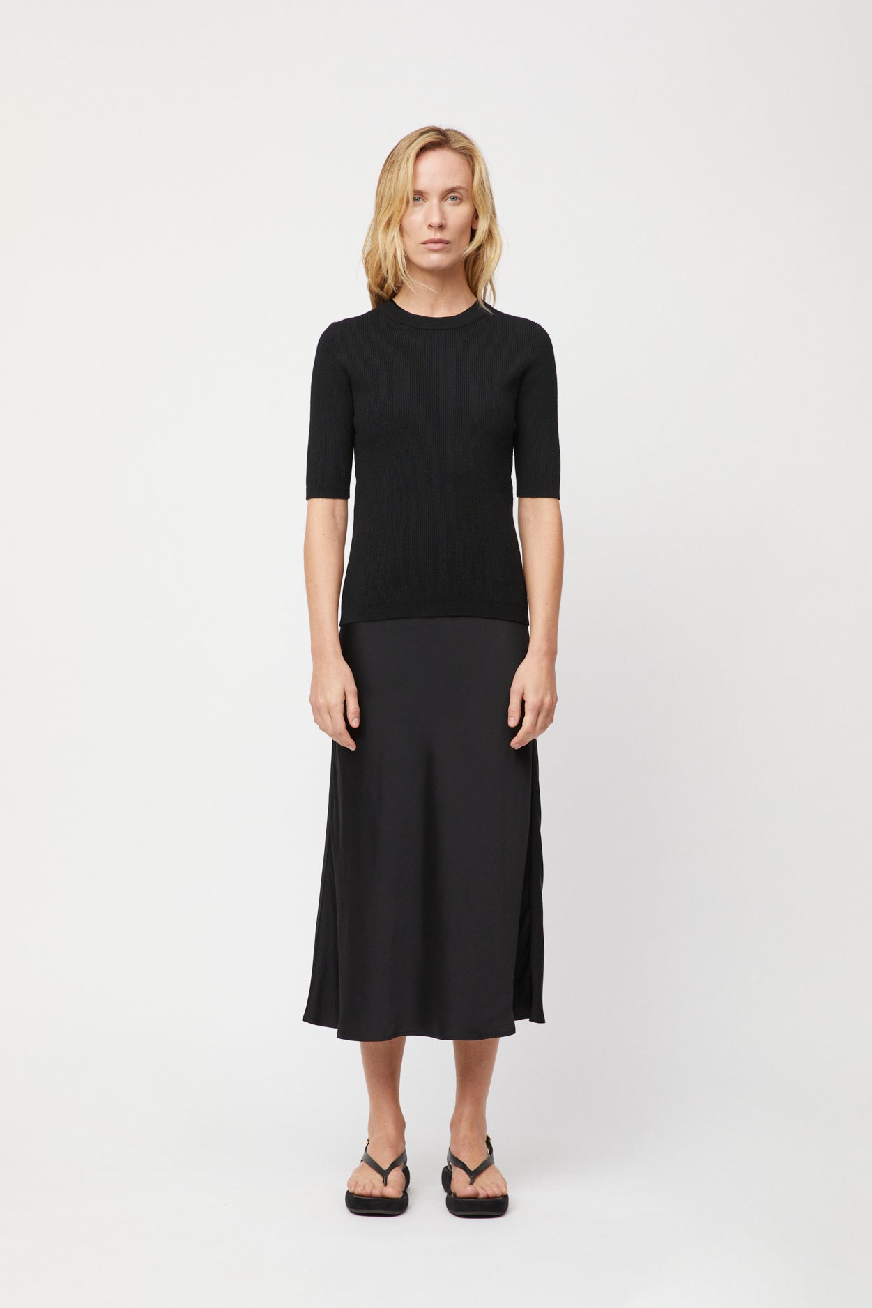 The FWSS Midi Sleeve Rib Tee is a delicate tee knitted in 100% soft merino wool. Inspired by the FWSS 90’s Tank Top, this tee will become a sought-after addition to your capsule wardrobe. The silhouette is designed in a body conscious, hugging fit with added hip length for extra comfort. Wear it with the FWSS Bias Cut Mini Skirt for a polished, minimalistic look.