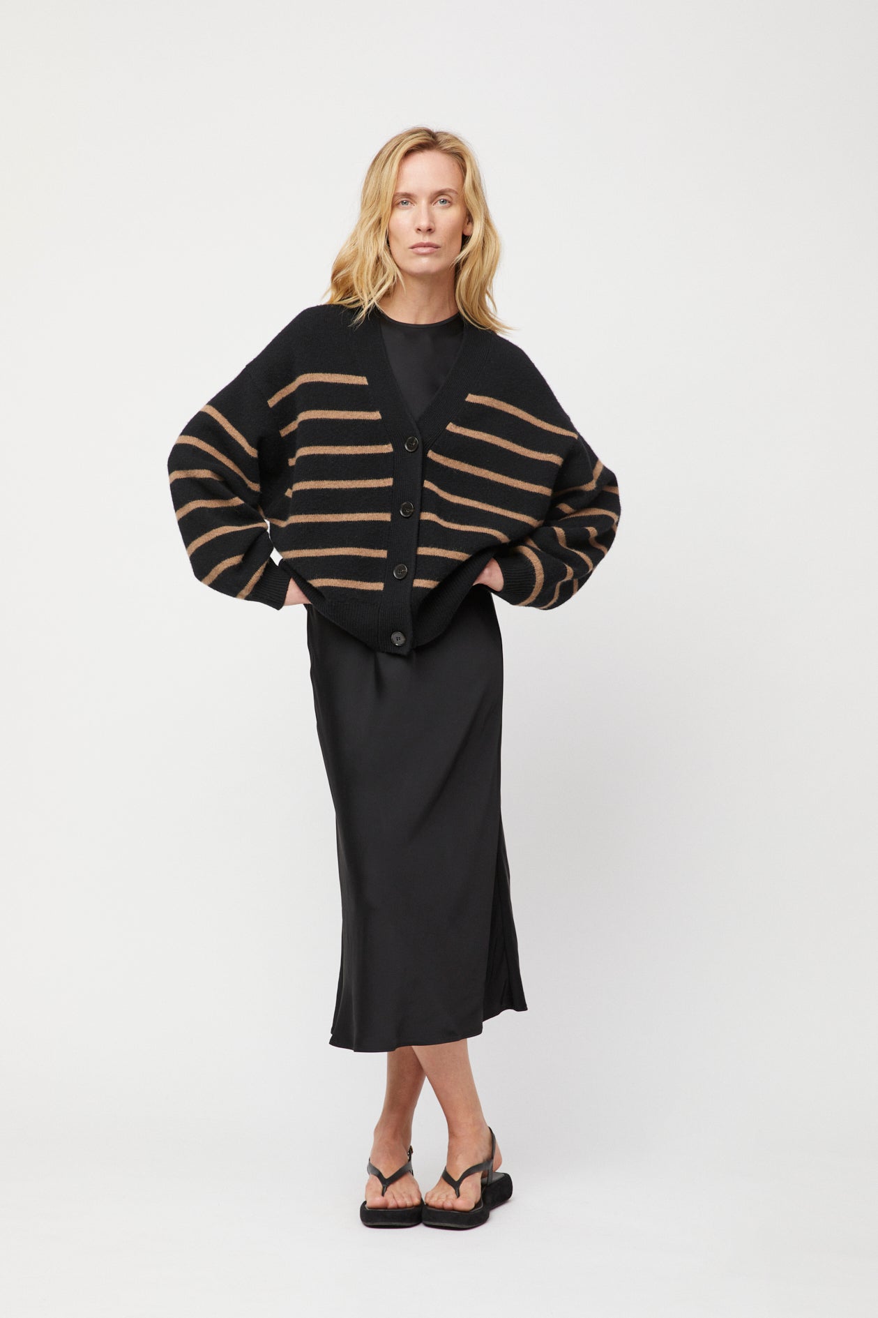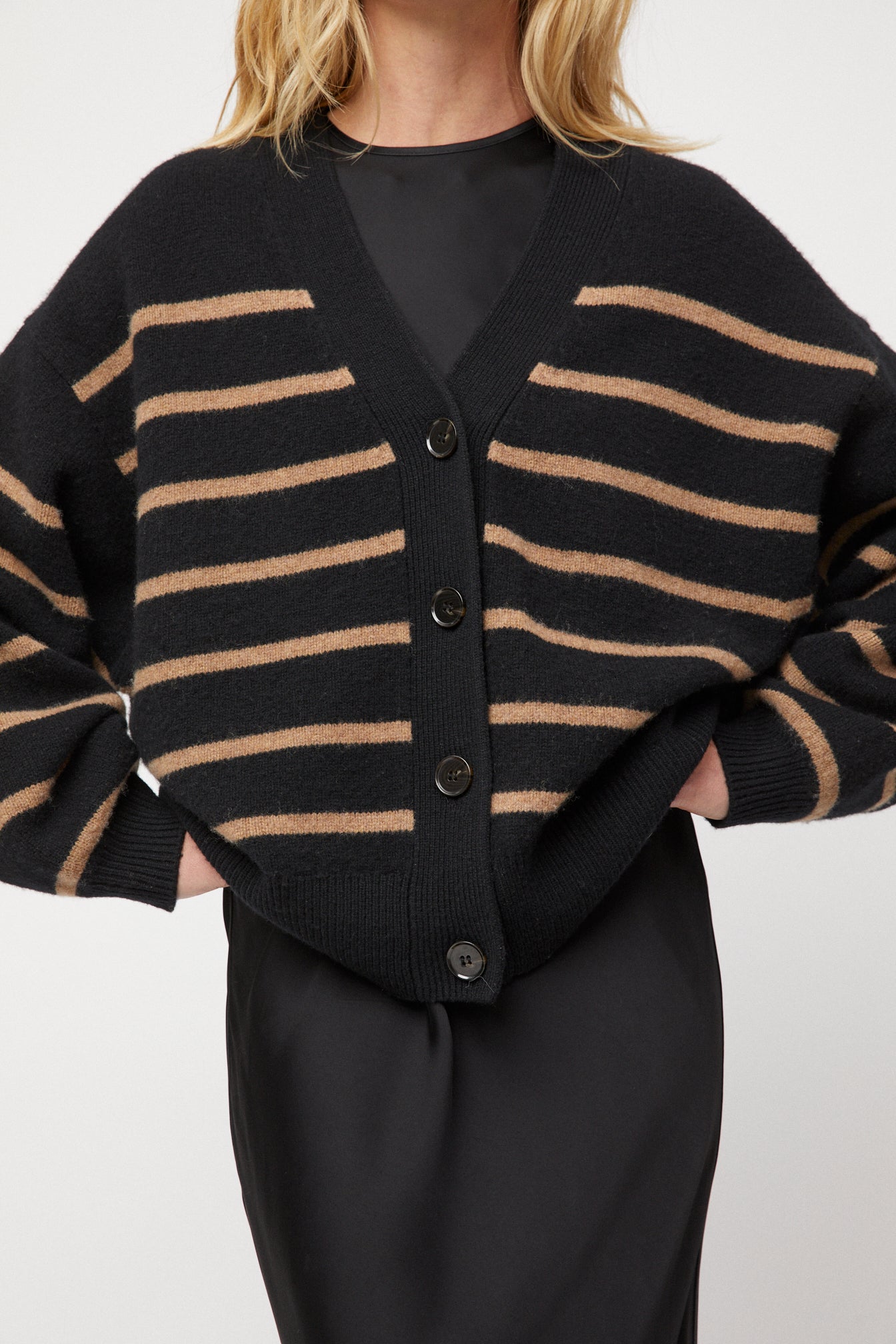 Mooring Cardigan Black Praline Stripe