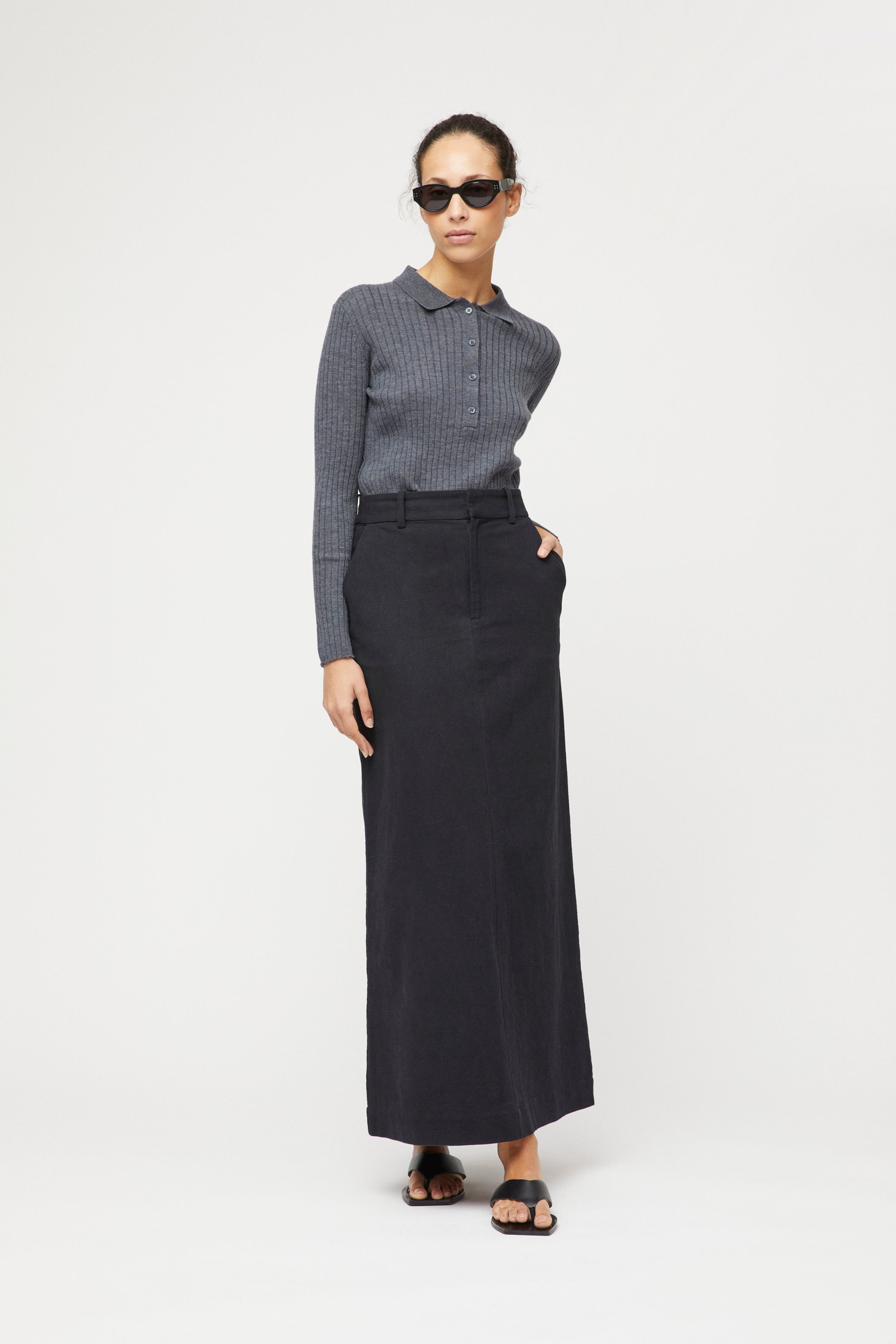 The FWSS Colette Piqué is crafted from super soft merino wool. This sophisticated style is knitted in a fitted piqué design that offers a snug and flattering silhouette. The classic collar with button-down placket adds preppiness and elegance, elevating the shirt's overall appeal. Delicate slit details at the side seam and long cuffs add subtle yet distinctive accents, enhancing the shirt's refinement. Style with the FWSS Linen Côte d’Azur Midi Skirt for a refined look.