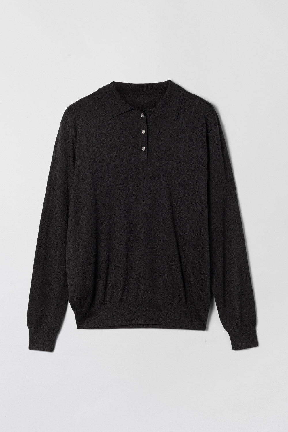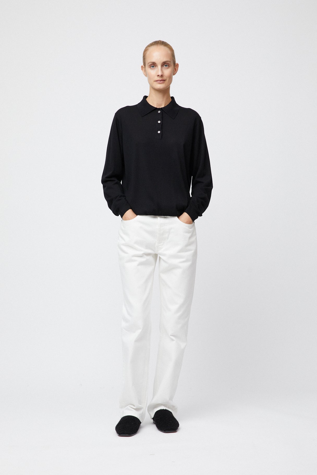 The FWSS Silk Cashmere Polo Sweater offers a refined take on the classic pique sweater, adding quiet luxury to any wardrobe. The fit is relaxed and slightly oversized, knitted in a super soft silk and cashmere blend.