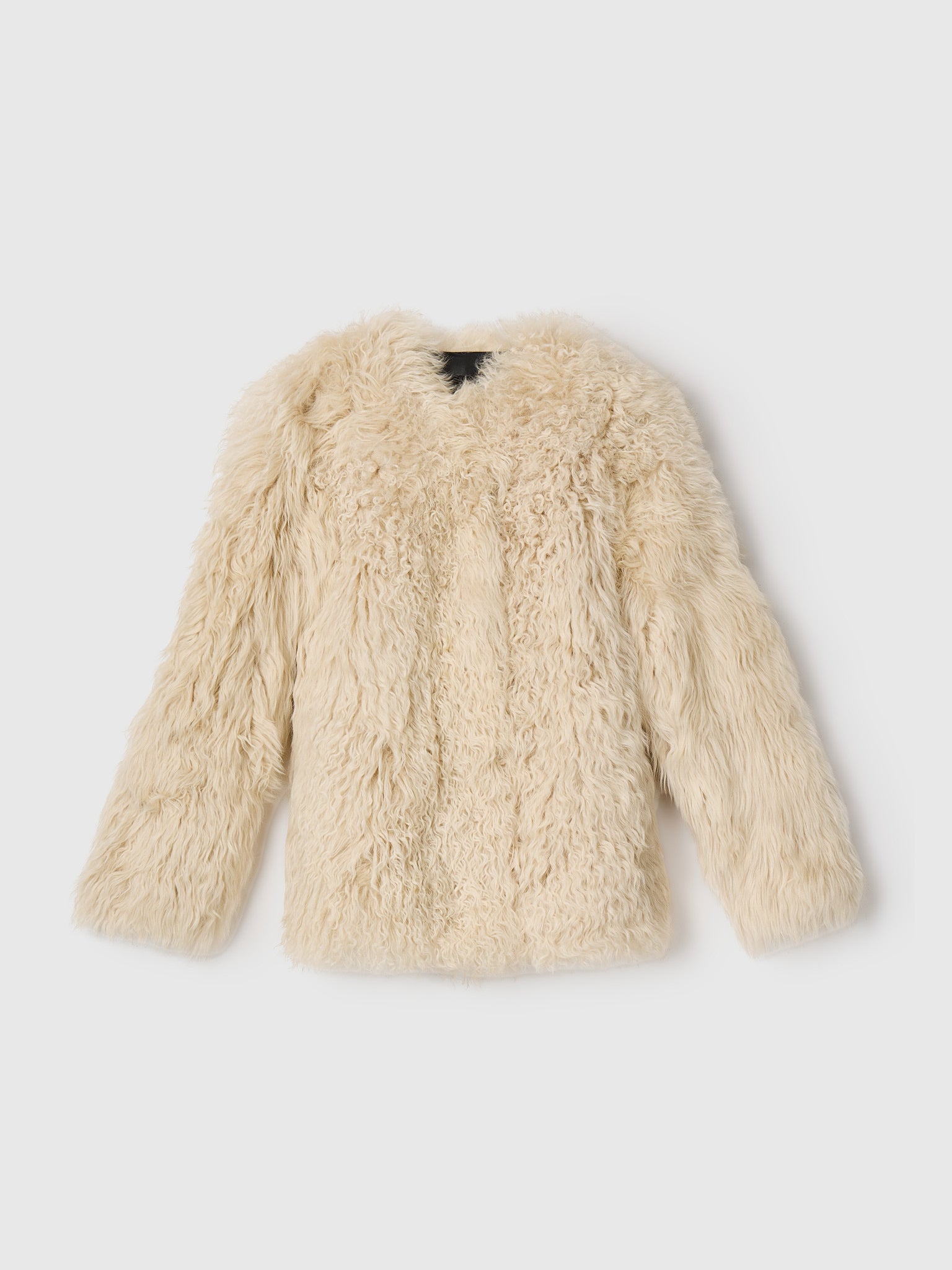 The FWSS Como Shearling Jacket is crafted from curly lamb shearling, chosen for its natural warmth and texture. Clean edges and a simple hook-and-eye closure create a refined silhouette, while side seam pockets add ease. Available this season in chocolate and whitecap gray, it is a timeless investment for the winter wardrobe.