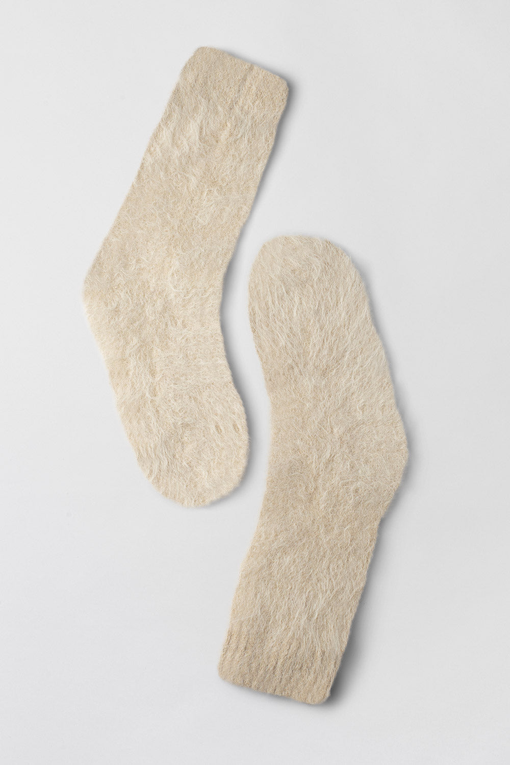 The FWSS Montpellier Cozy Socks are knitted in a fluffy alpaca wool blend. These fuzzy socks are a must have in your wardrobe this season. Wear them for long, cozy mornings at home or styled with chunky loafers for a stylish look on the go.
