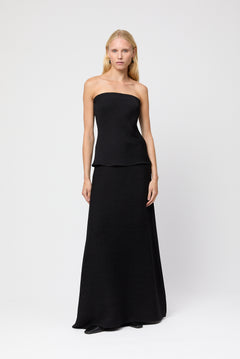 The FWSS Amara Strapless Top is bias-cut in a textured fabric for a fluid, flattering drape. Designed with a curved neckline, internal elastic with silicone trim, a shaped waist for secure fit, and a concealed back zip, it offers a modern, understated take on eveningwear. Pair with the Amara Maxi Skirt for an effortlessly elegant set.