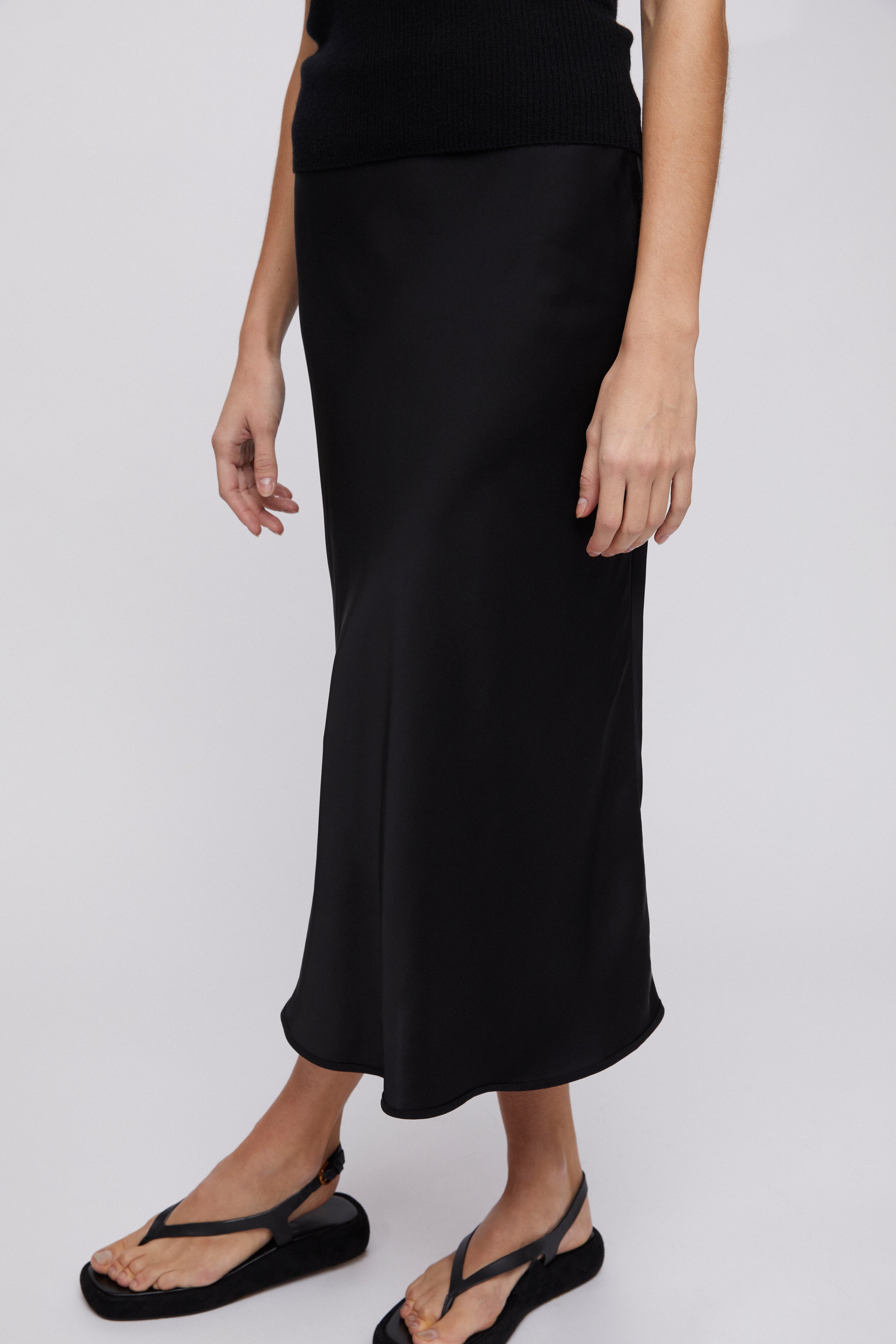 Bias Cut Slip Skirt Jet Black