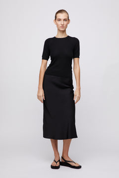 The FWSS Bias Cut Slip Skirt is crafted from 100% viscose with a subtle sheen. Cut on the bias for a gentle drape, it creates a relaxed, body-skimming silhouette.