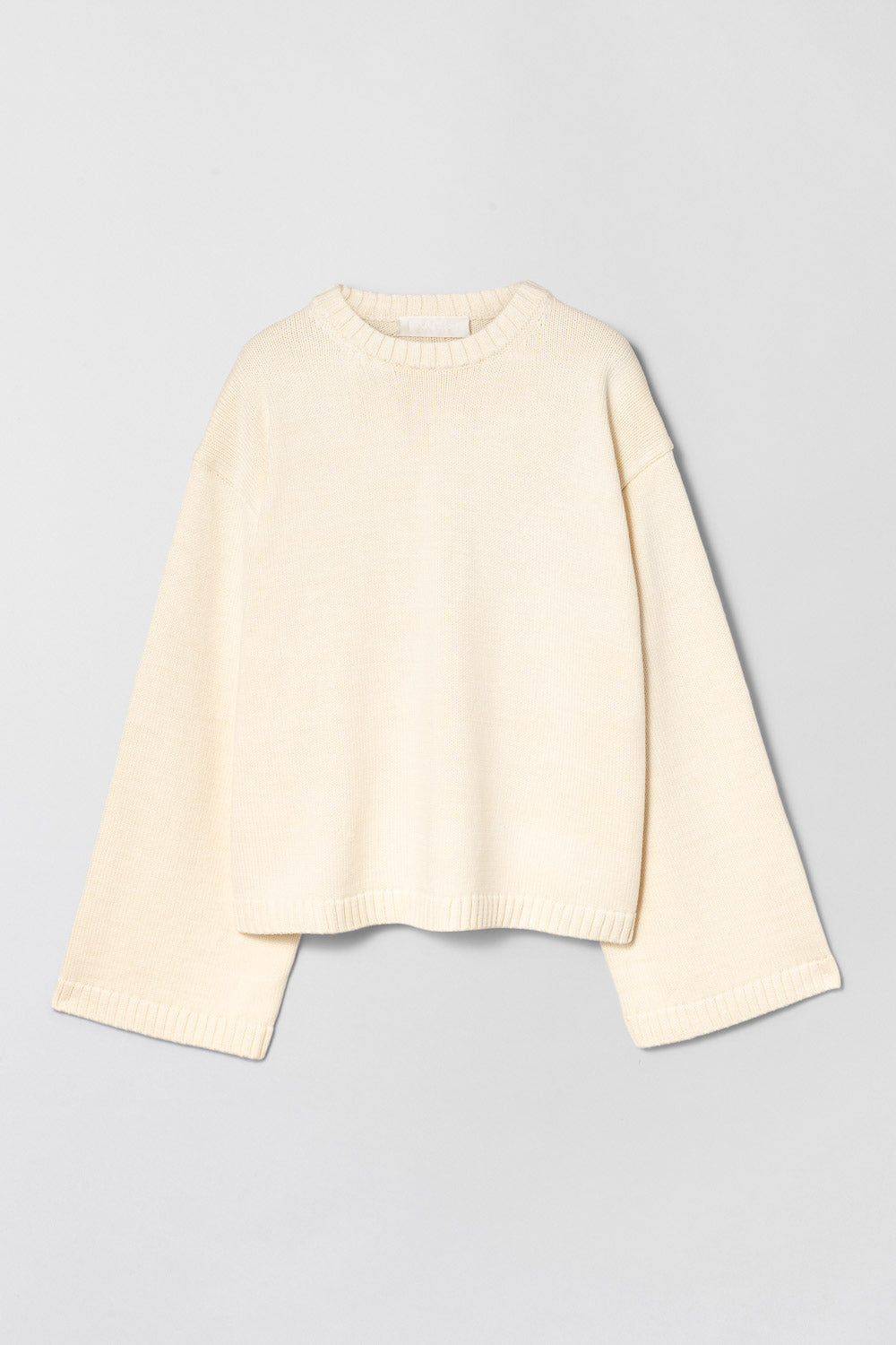 The FWSS Cape Cod Sweater, knitted in heavy cotton, offers an oversized, relaxed fit with wide, ribbed cuff sleeves. Its chunky silhouette, reversed jersey stitch detail, and fully fashioned details create a balanced blend of comfort and understated luxury.