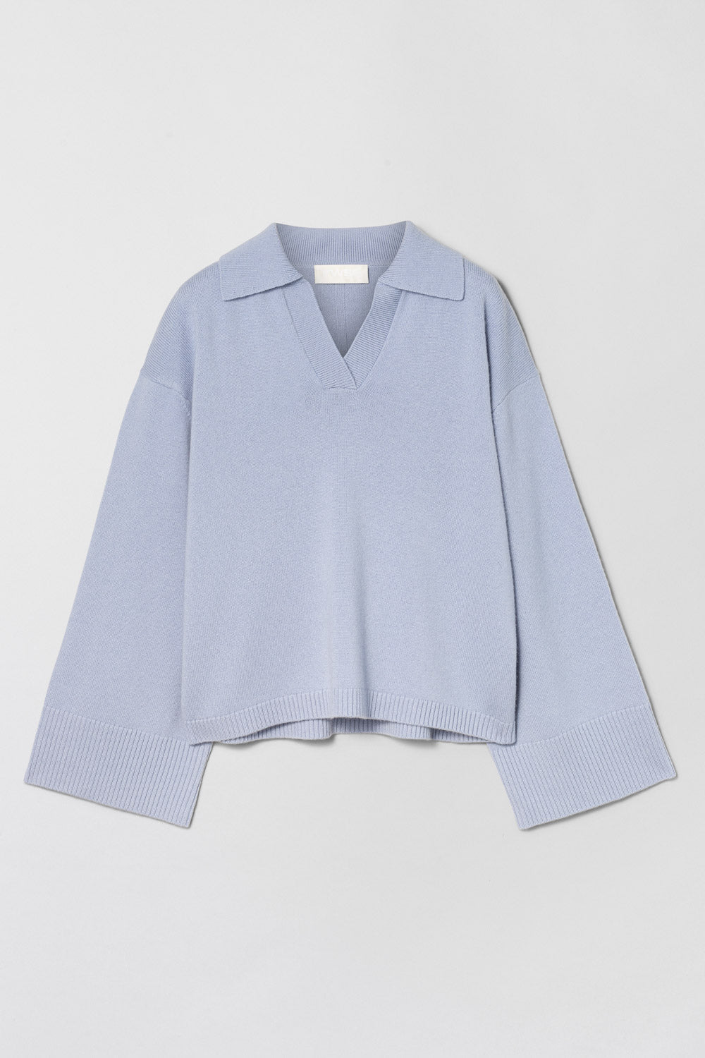 The FWSS Cape Cod Polo Sweater is knitted in super soft, ultrafine merino wool for a relaxed shape. Its plain knit construction, v-neck collar define the look, while wide sleeves and reversed jersey stitch detail offer a refined finish.