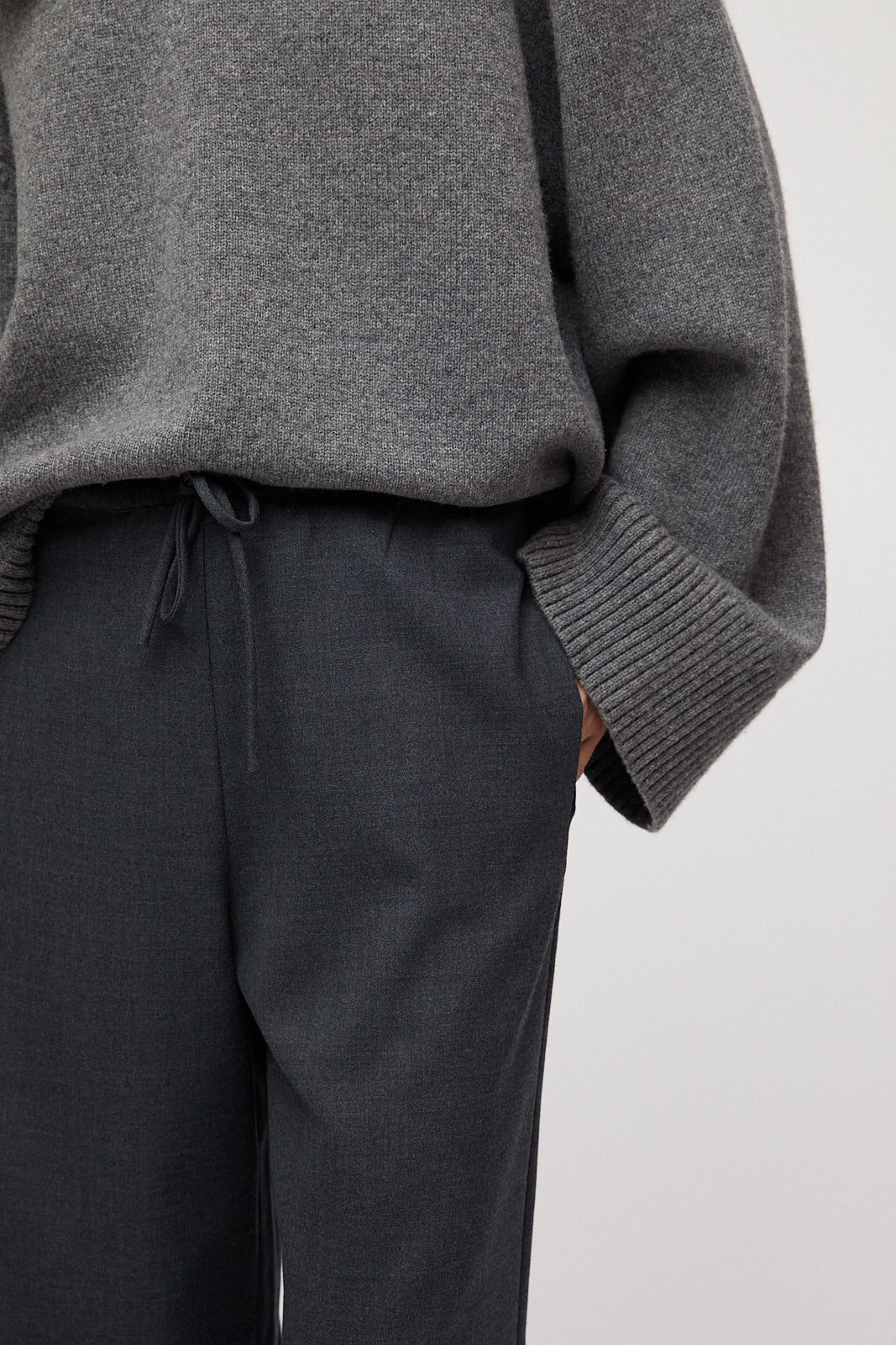 The FWSS Cape Cod Sweater, made from superfine lambswool, offers an oversized, relaxed fit with wide, ribbed cuff sleeves. Its chunky silhouette, reverse jersey stitching, and fully fashioned details create a balanced blend of comfort and understated luxury. Pair it with the FWSS Siena Drawstring Trousers for an elevated ensemble.