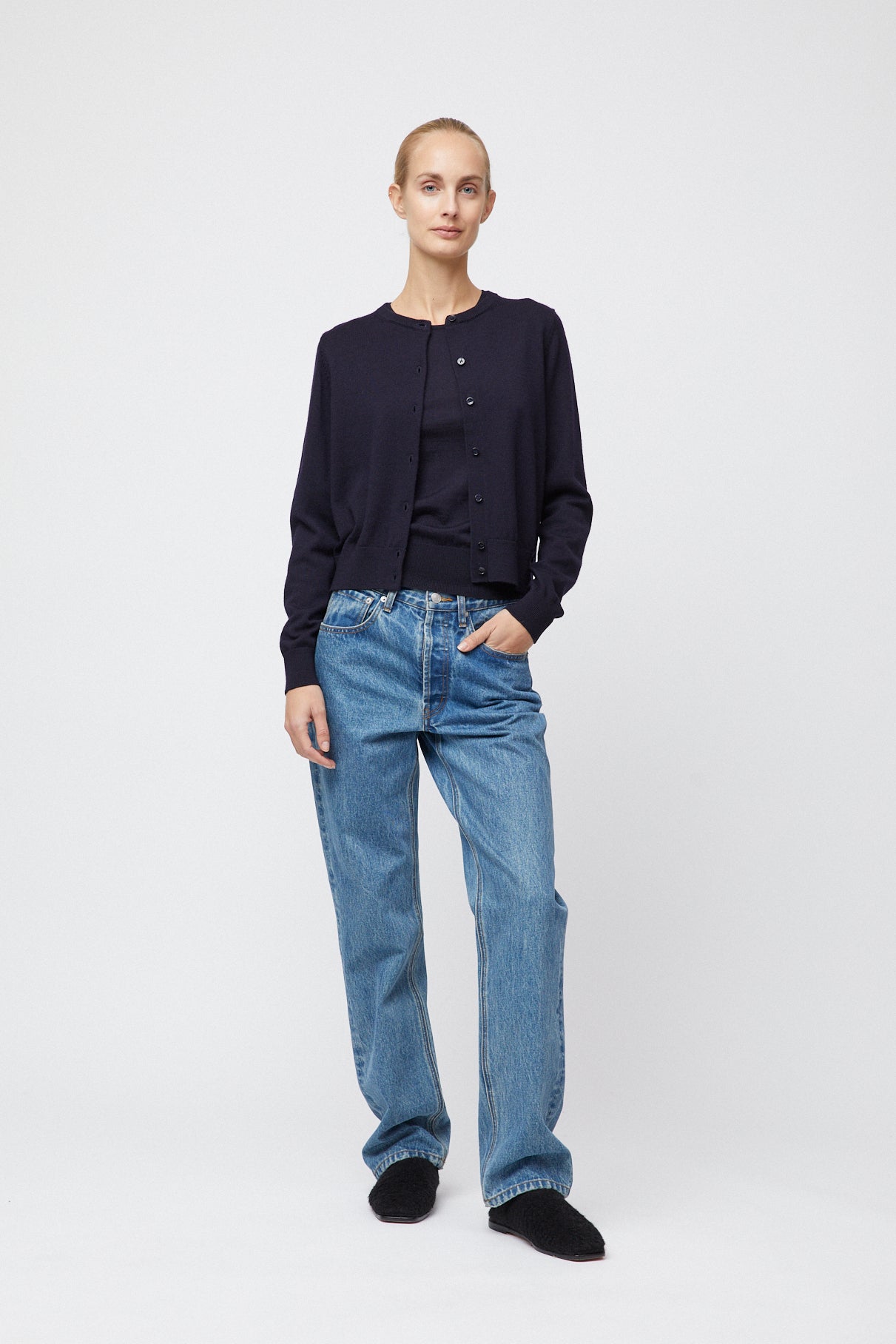The FWSS Classic Merino Cardigan is crafted from luxurious merino wool. Slightly cropped, it rests at the waist – a perfect combination with the FWSS Classic Merino Tank.