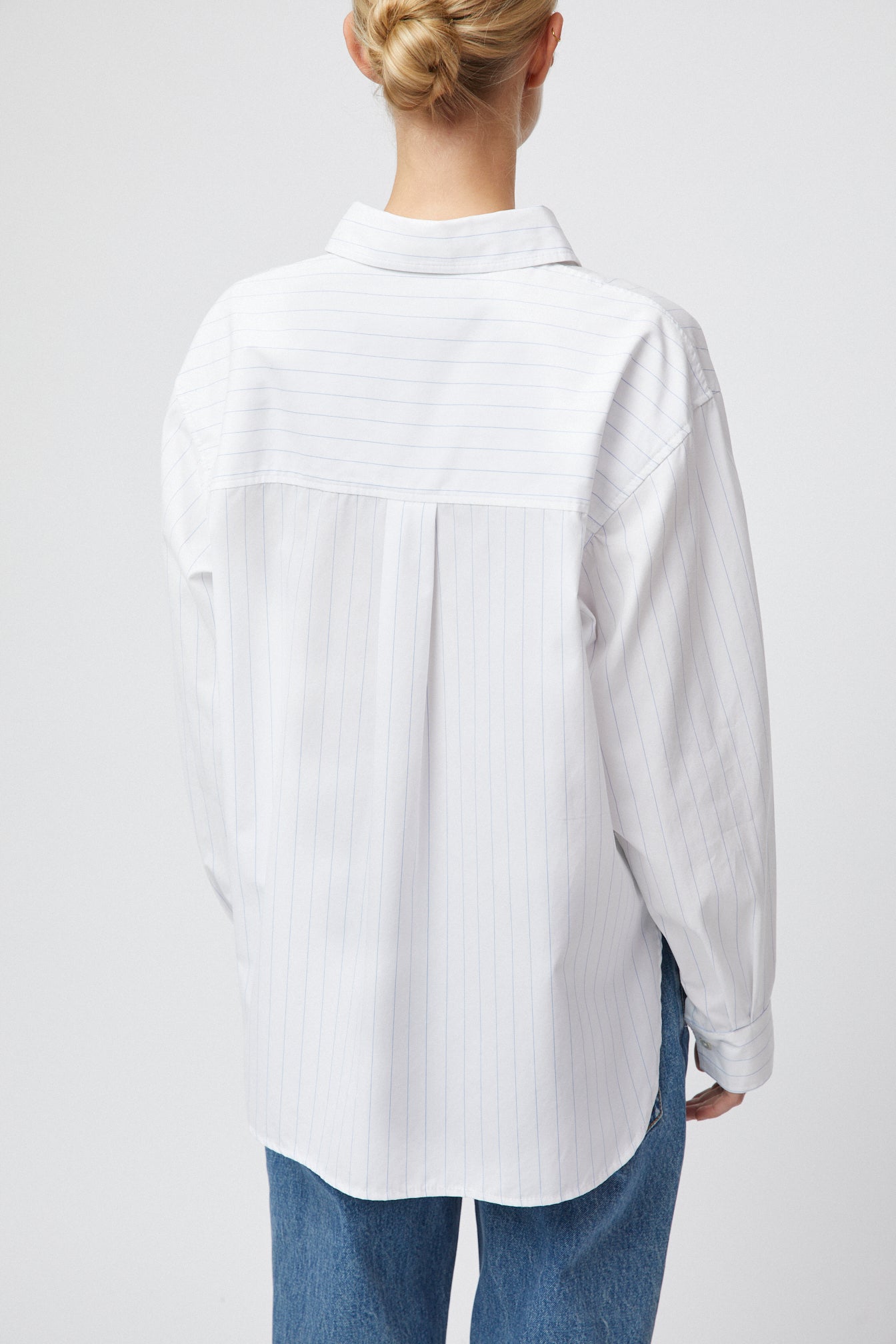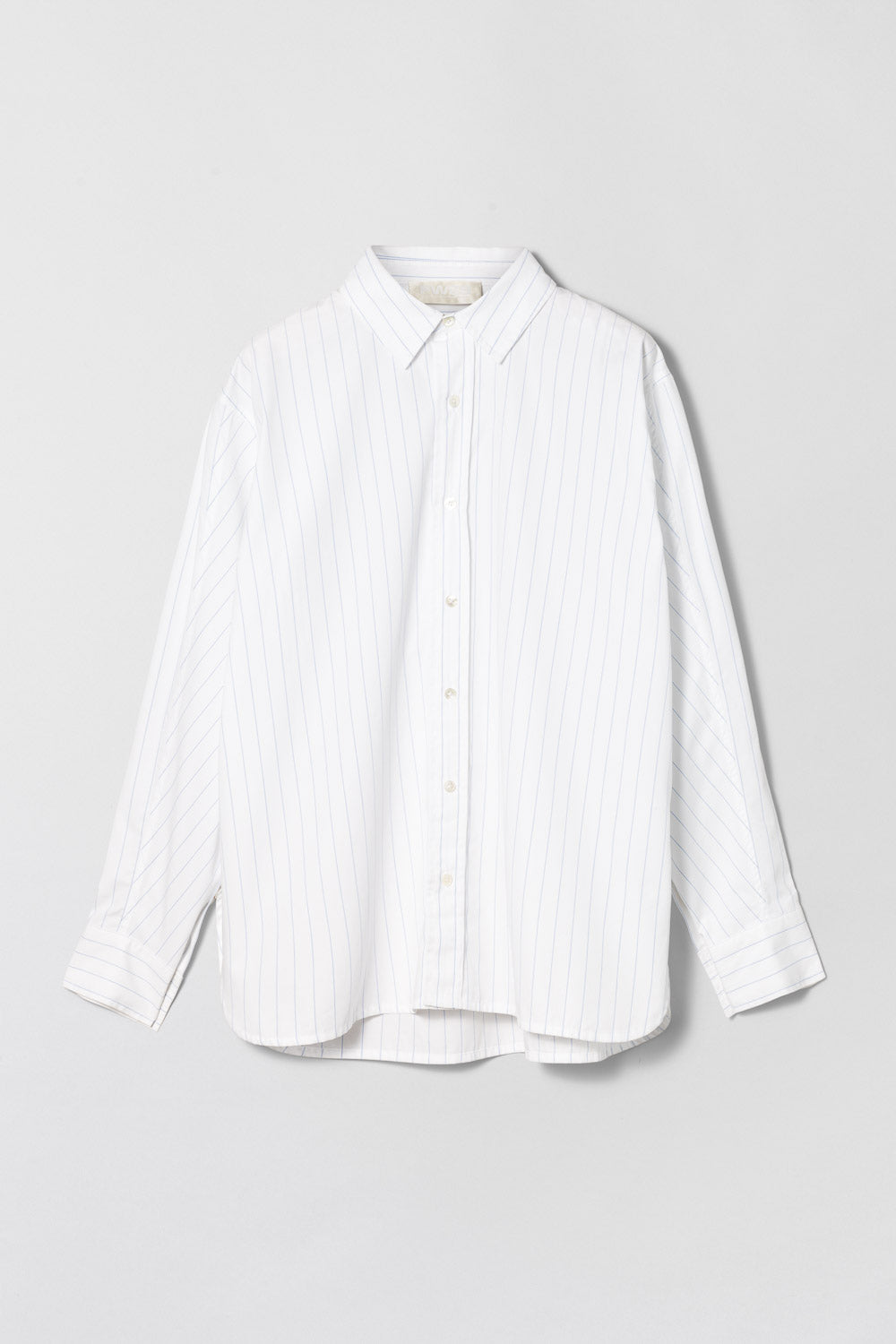 The FWSS Oxford Coastal Shirt is cut from 100% sturdy cotton in a boxy yet feminine silhouette. A button-down collar and crisp lines add a refined look, suitable for work or casual occasions.
