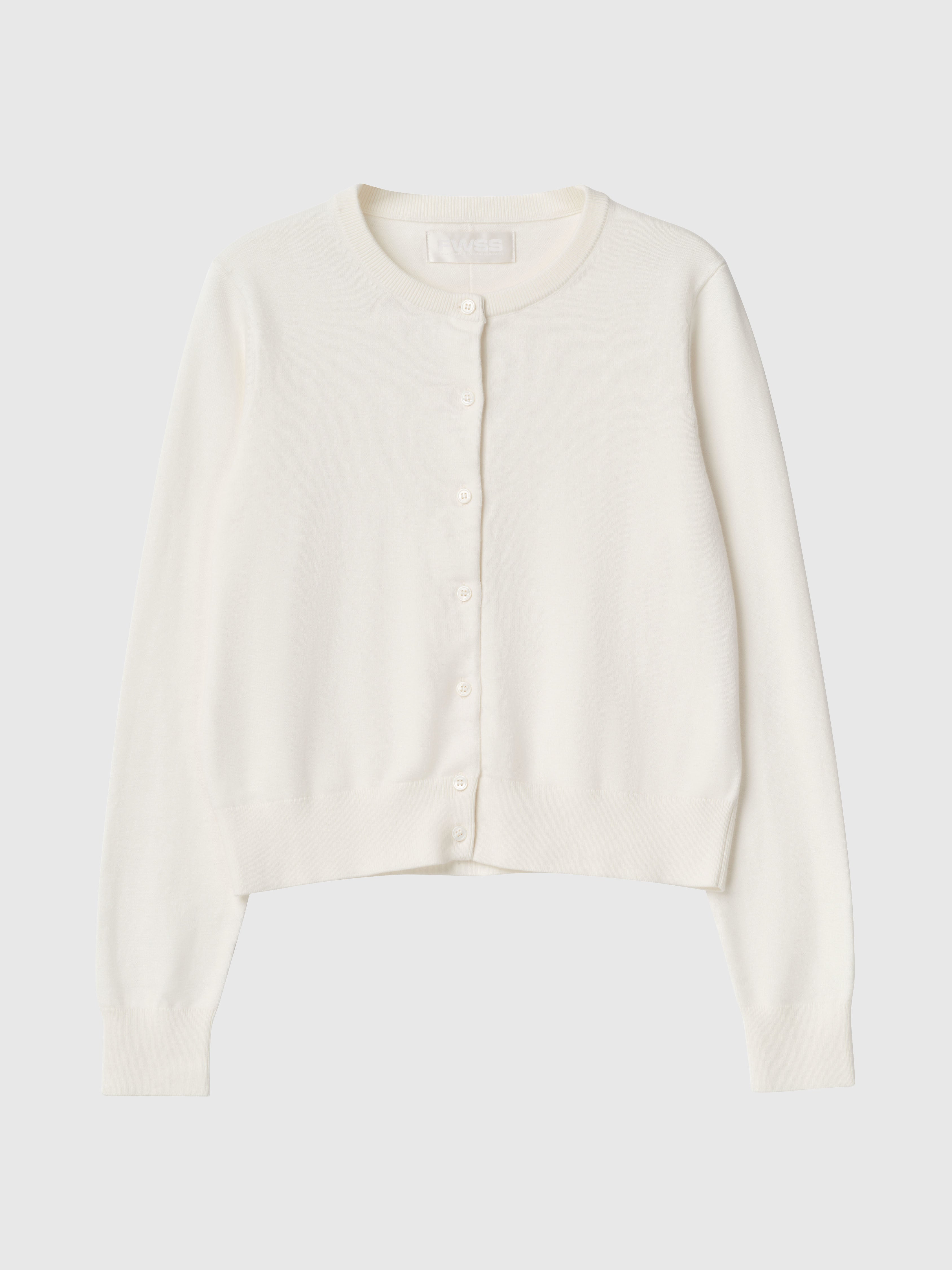 Made in a soft cotton–cashmere blend, the Cotton Cashmere Cardigan offers a comfortable, lightweight feel. Slightly cropped to sit at the waist, it pairs seamlessly with the Cotton Cashmere Tank for a clean, modern look.
