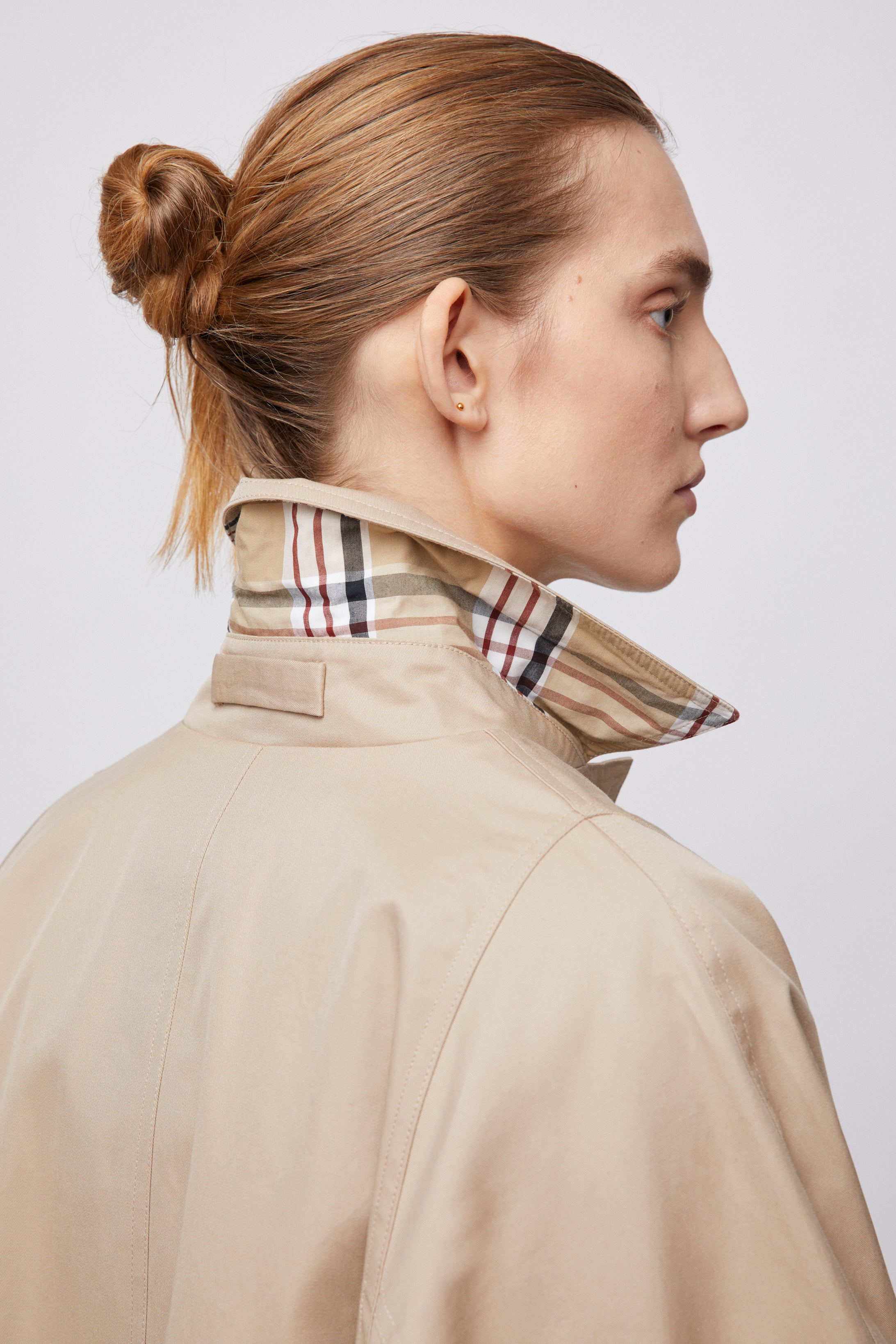The FWSS Cropped Trench Coat is a trans-seasonal wardrobe essential with a relaxed, A-line silhouette, structured classic cotton twill shell and signature check lining. Featuring a buttoned vent at back, covered button placket at front and perfectly placed angled welt pockets. Wear it with the FWSS Barrel Leg jeans and sandals for a relaxed 90s look.