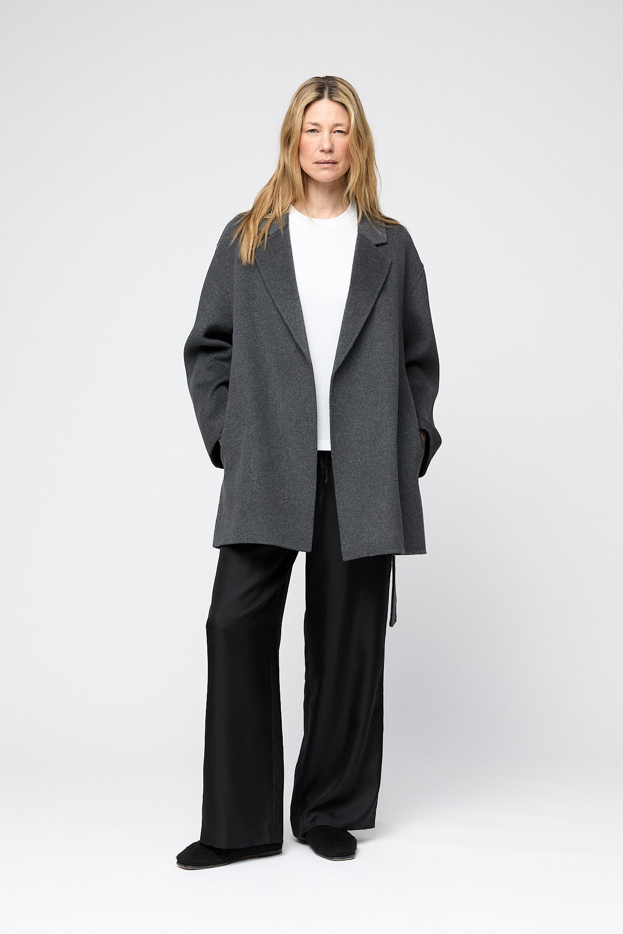 The Doublé Wrap Jacket is a mid-length interpretation of the signature Doublé Wrap Coat, crafted from 100% doublé wool – a doublé-woven fabric that offers both structure and softness. Inspired by 90s silhouettes, it features a relaxed fit, belted waist and subtle side pockets. A timeless and versatile jacket for everyday wear.