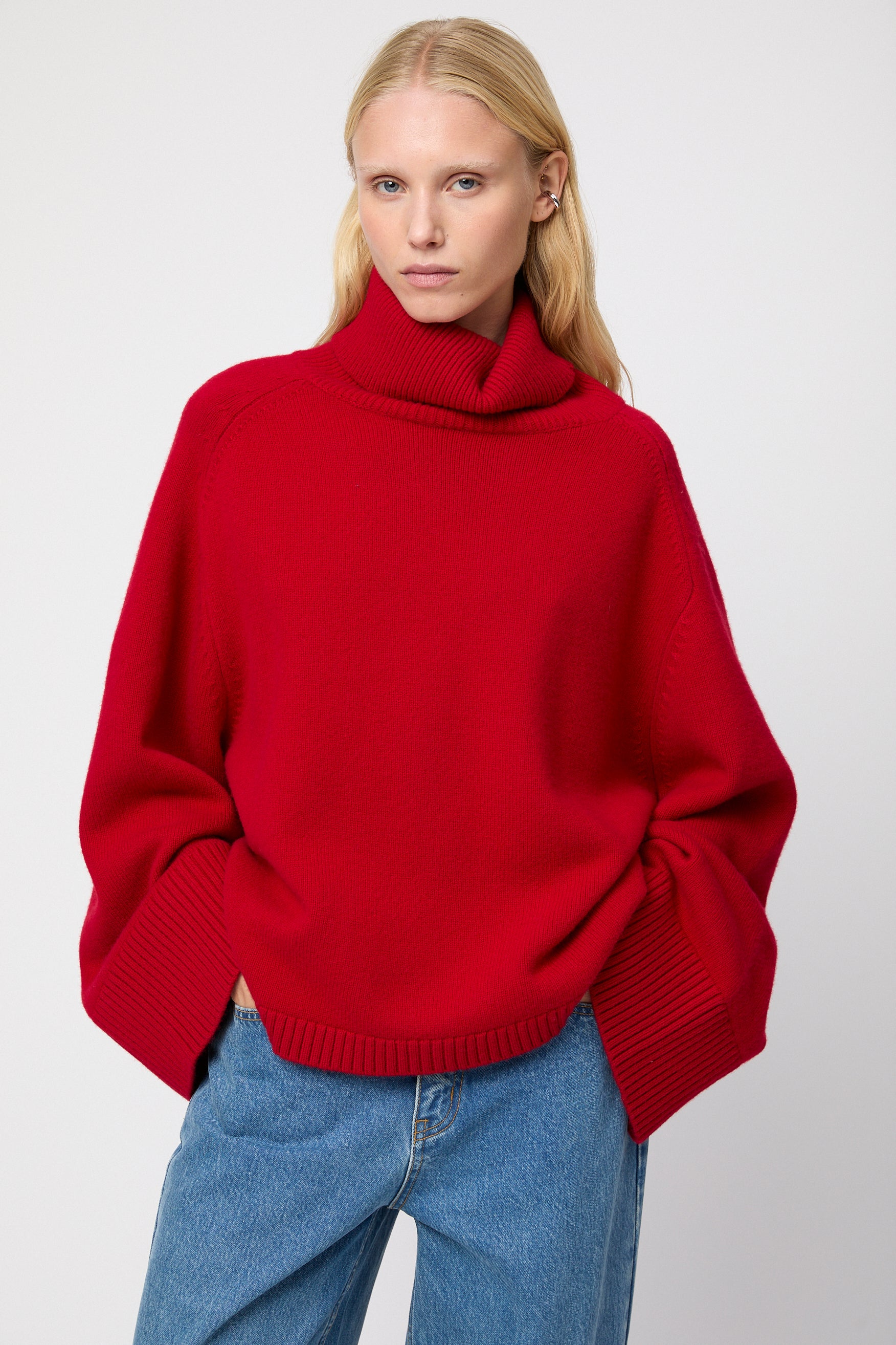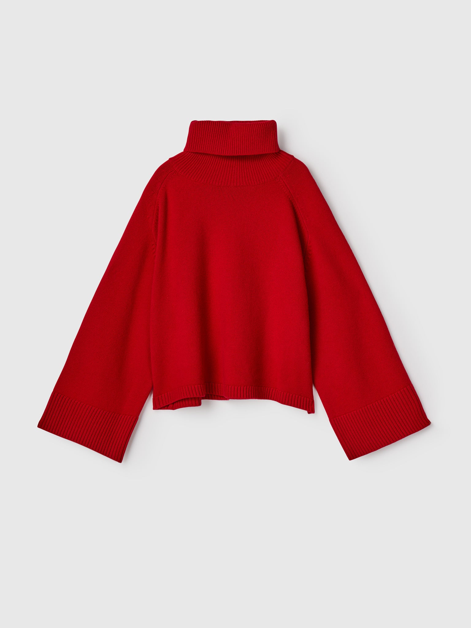 The Issa Turtleneck Sweater is knitted in chunky superfine lambswool for warmth and softness. It is detailed with oversized raglan bell sleeves, a ribbed turtleneck, and subtle, refined finishes. A luxurious wardrobe addition that’s easy to style.