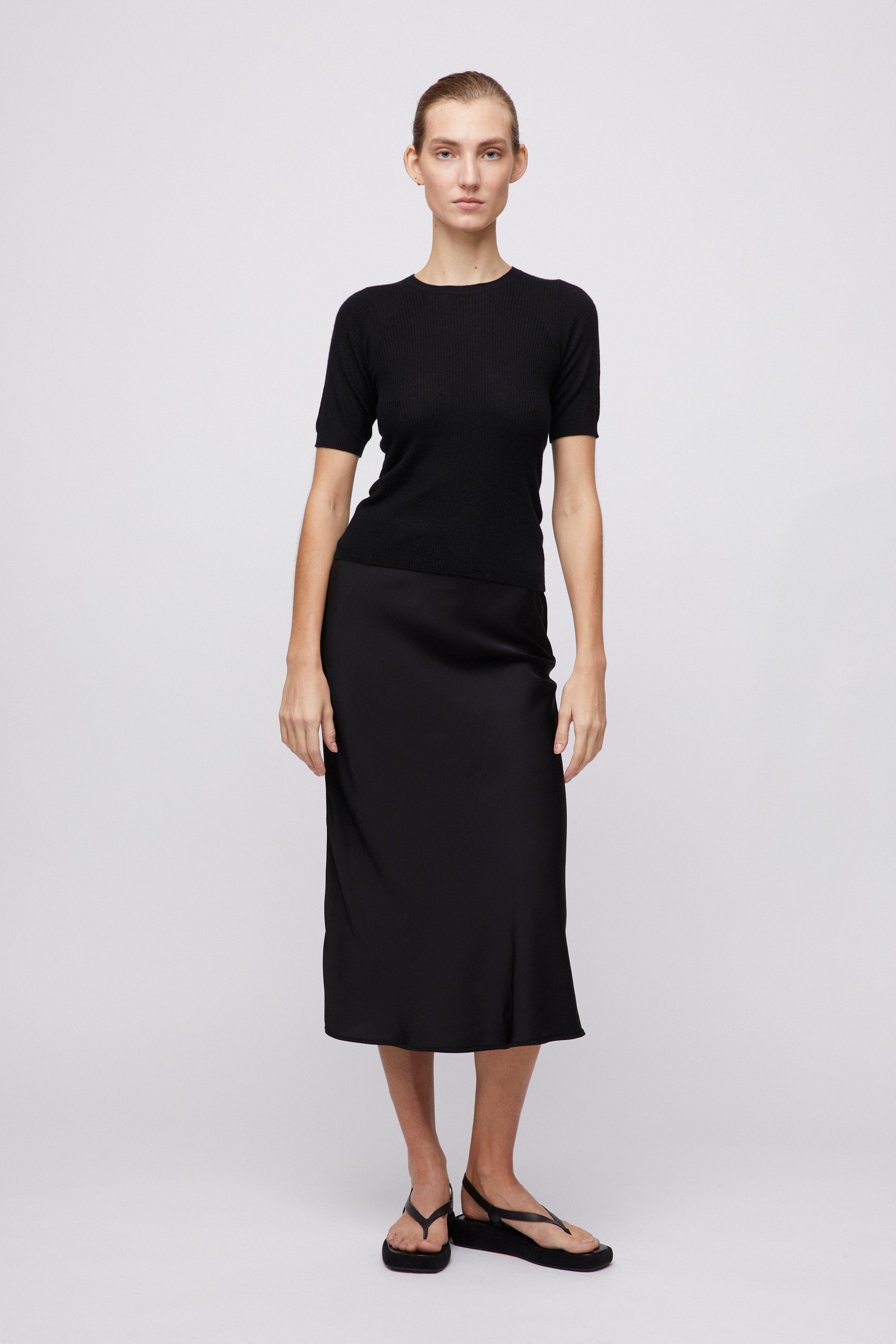 The FWSS Jump Around T-Shirt is a luxurious rib knitted top made from 100% cashmere. Shaped in a form-fitting silhouette and framed by a ribbed scoop-neck and cuffs. It is perfect for layering and a super comfortable staple all year around.