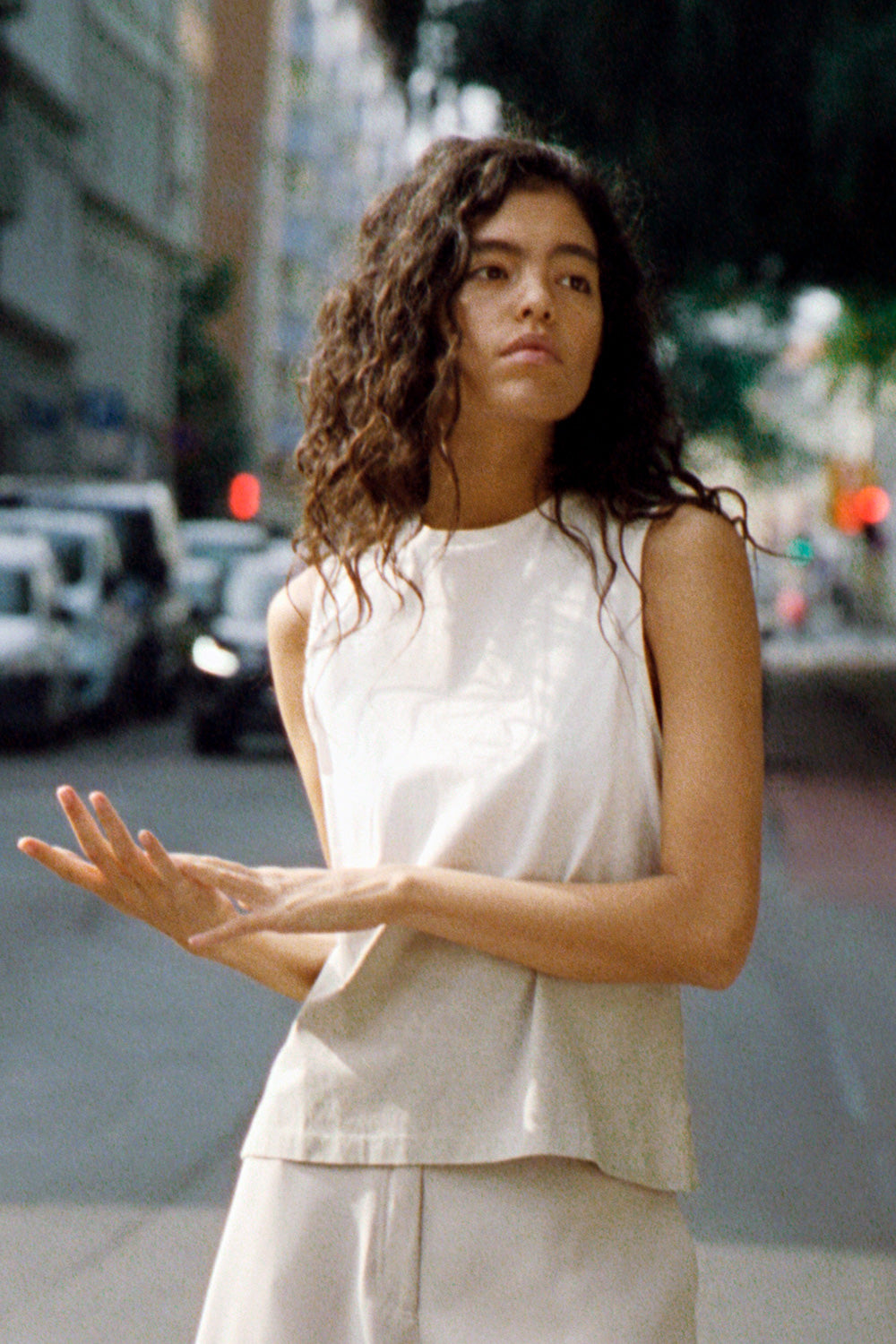 The FWSS Kin Top is a tank top in a soft 100% organic cotton jersey. The fabric is made in an Oeko-tex certified factory, ensuring no harmful or allergenic chemicals. Features wide shoulders with cool cutline details, a straight fit and subtle slits in the side seams. A basic with a contemporary touch of details making it easy to wear and combine.