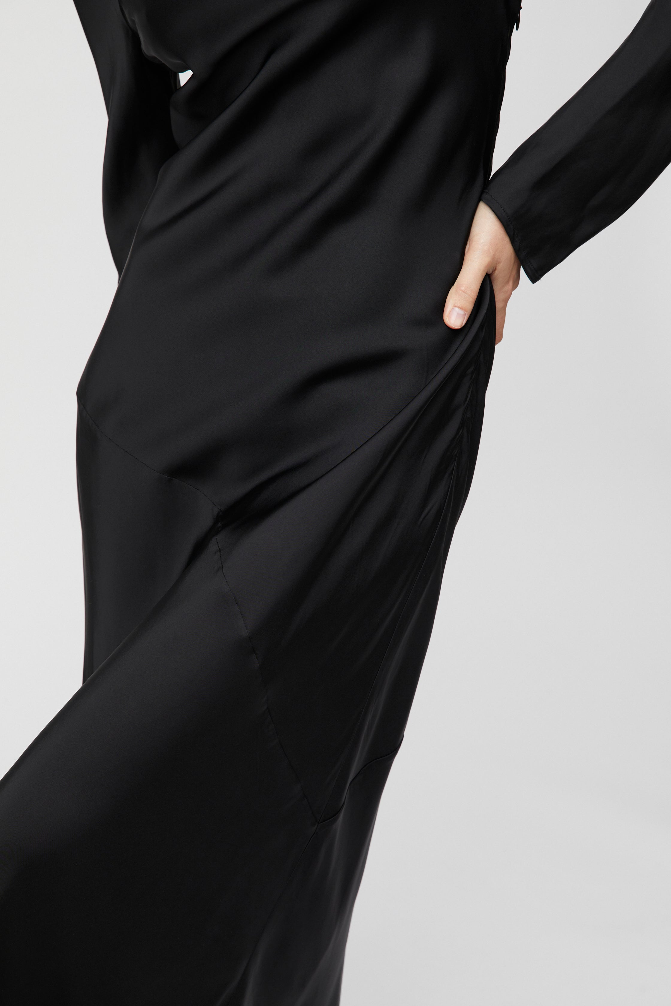 Longsleeve Bias Cut Slip Dress Jet Black