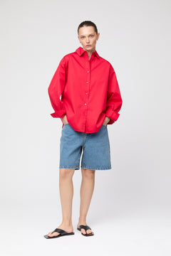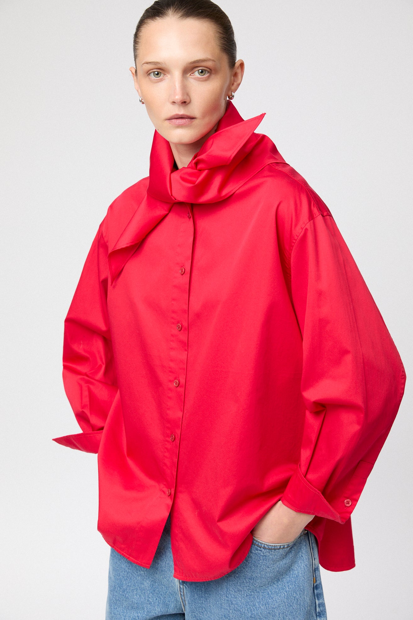 The Poet Scarf is a triangle scarf that can be worn around the neck or as a headscarf. Available in multiple colors and fabrics, including cotton poplin, linen, cotton flannel, and cotton–tencel blends, it pairs effortlessly with the Coastal Shirt or Poplin Workwear Shirt.