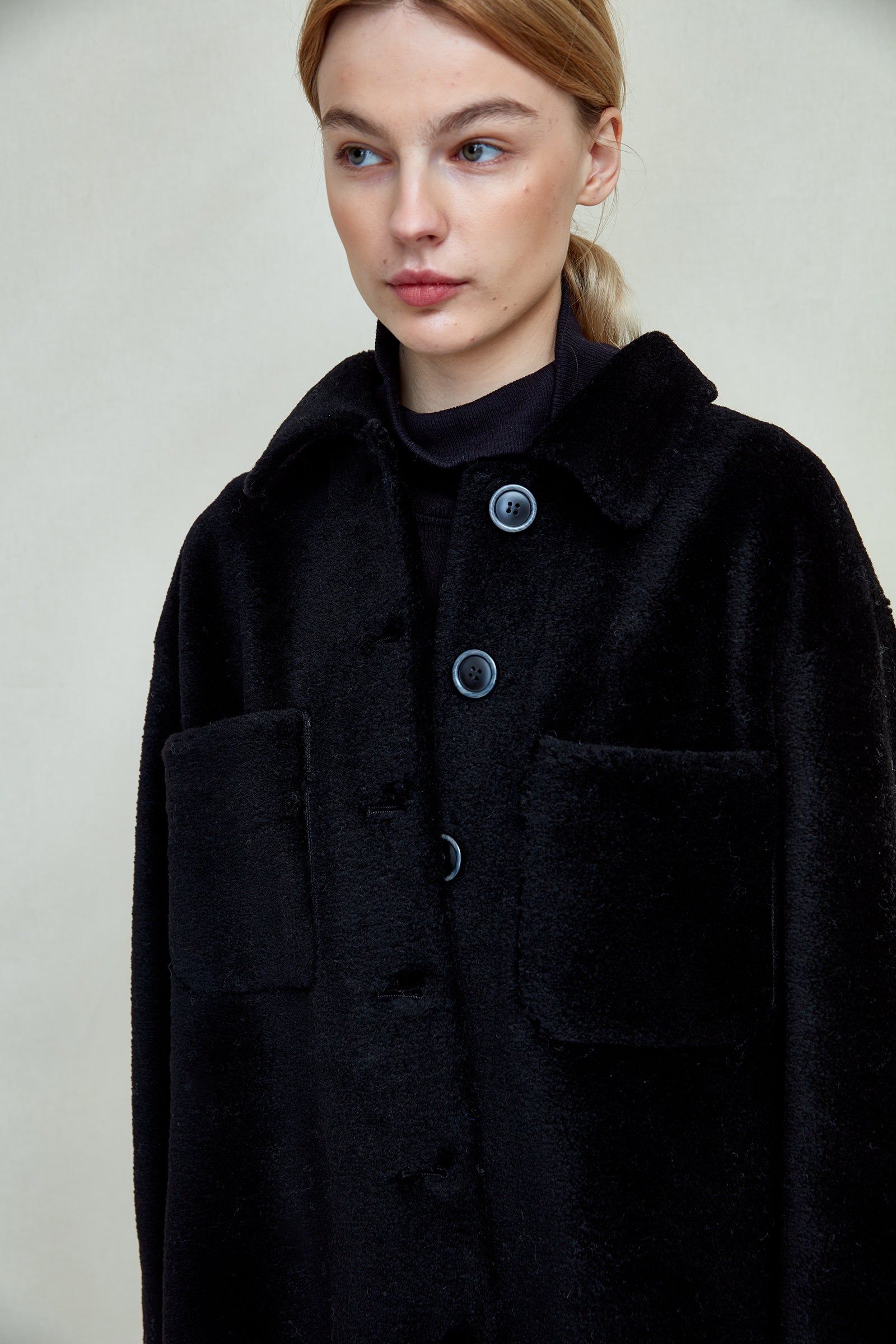 The FWSS Sealiner Teddy is a loose fit jacket inspired by our previous versions of the popular Sealiner jacket and shirt. This time in a friendly teddy fur, made by fine lambswool fibers carefully knitted into a polyester backing. The quality has the warmth, softness and comfort from the lambswool and the stability and strength from its polyester backing – making for long-lasting and functional outerwear, without compromising on design and aesthetics. With a classic collar, patch pockets, a curved hemline and tortoise shell buttons. It is super warm and cosy and ideal for colder seasons.