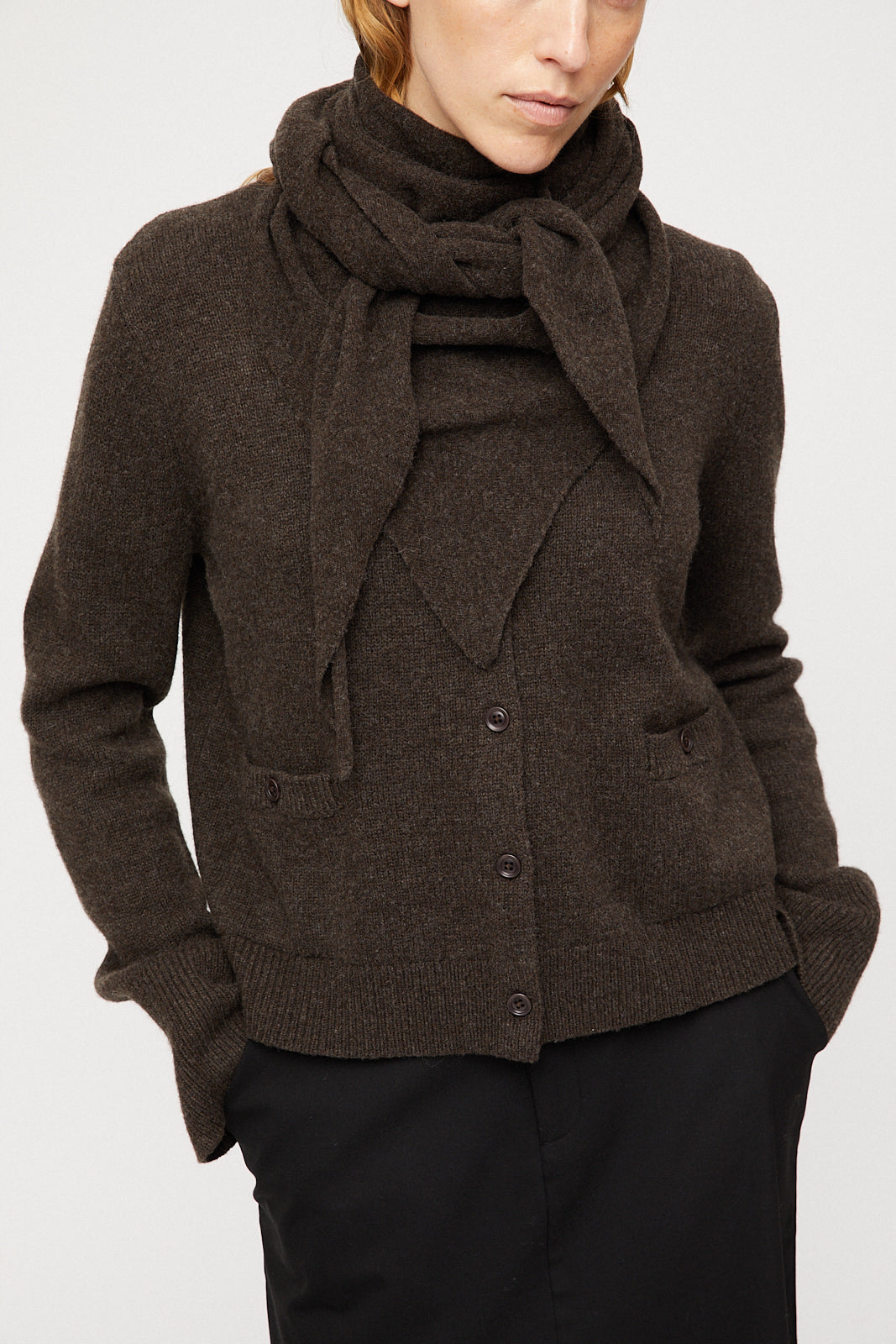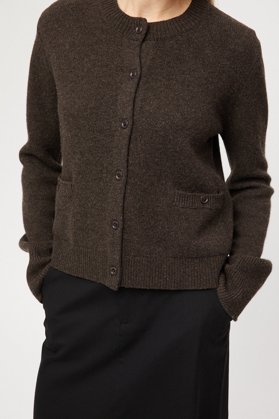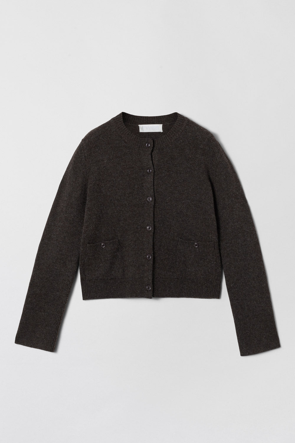 The FWSS Structured Wool Cardigan is crafted from 100% extrafine merino wool, offering a super soft brushed handle that feels luxurious against the skin. Designed for a relaxed fit with a feminine silhouette, the cardigan is beautifully detailed with a delicate button-down closure and subtle pockets in the front. The rib-knitted collar and long sleeves add to its sophisticated charm. Over-dimensional bell-shaped sleeves enhance the luxurious feel, making this cardigan a standout addition to any wardrobe. Style with FWSS Côte d’Azur Skirt for a chic look that effortlessly combines comfort and elegance.