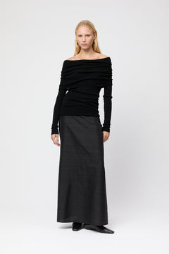 The FWSS Vivienne Midi Skirt is crafted from 100% cotton with a soft, subtle shine. It features a ruched elastic waistband for comfort, hidden side pockets, and an invisible back zipper. The double-layered design adds volume and flow. Style with the Off Shoulder Knit Top for an elevated summer look.