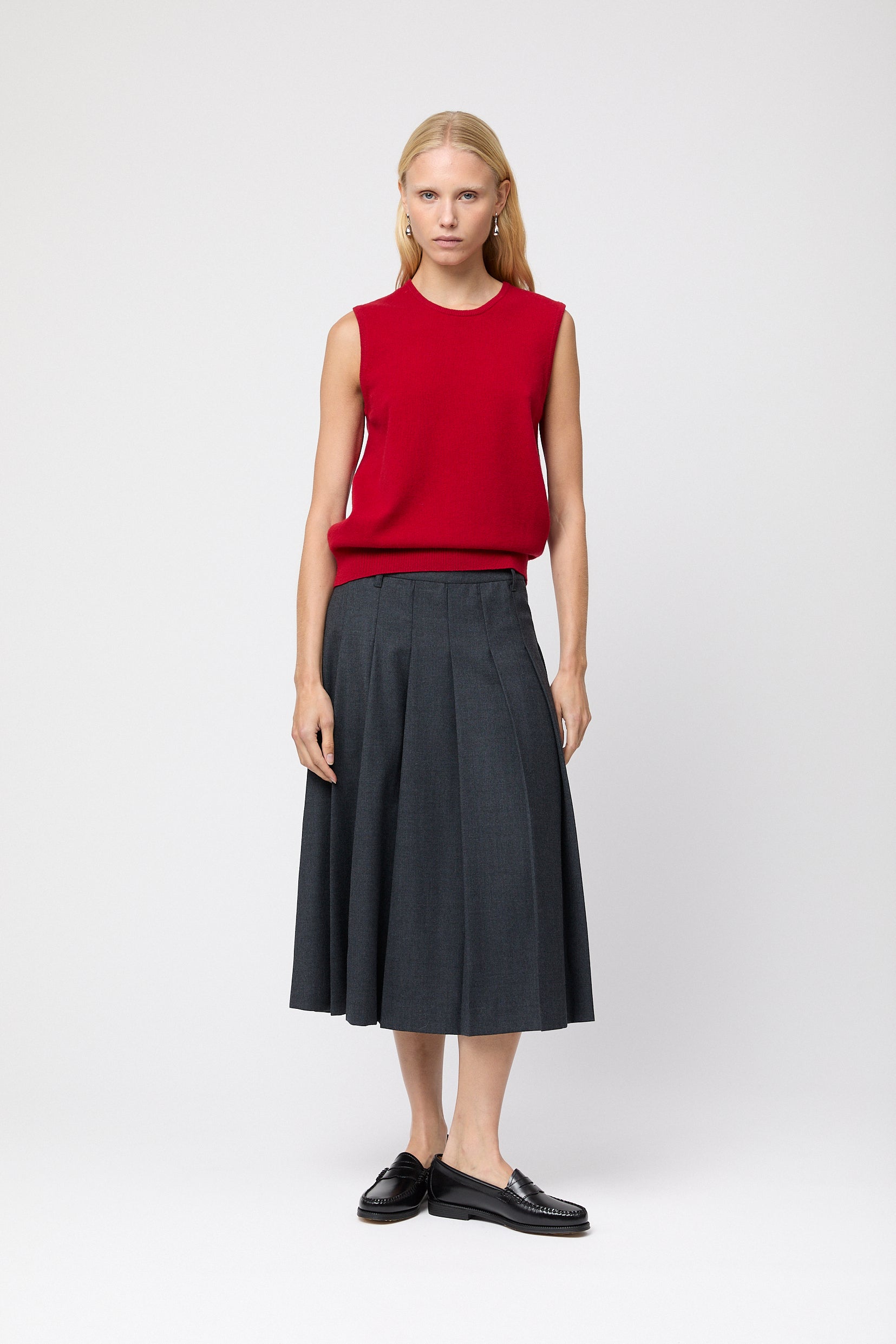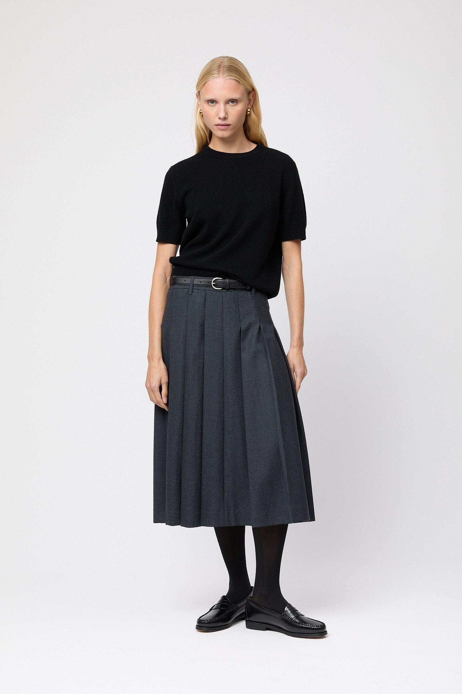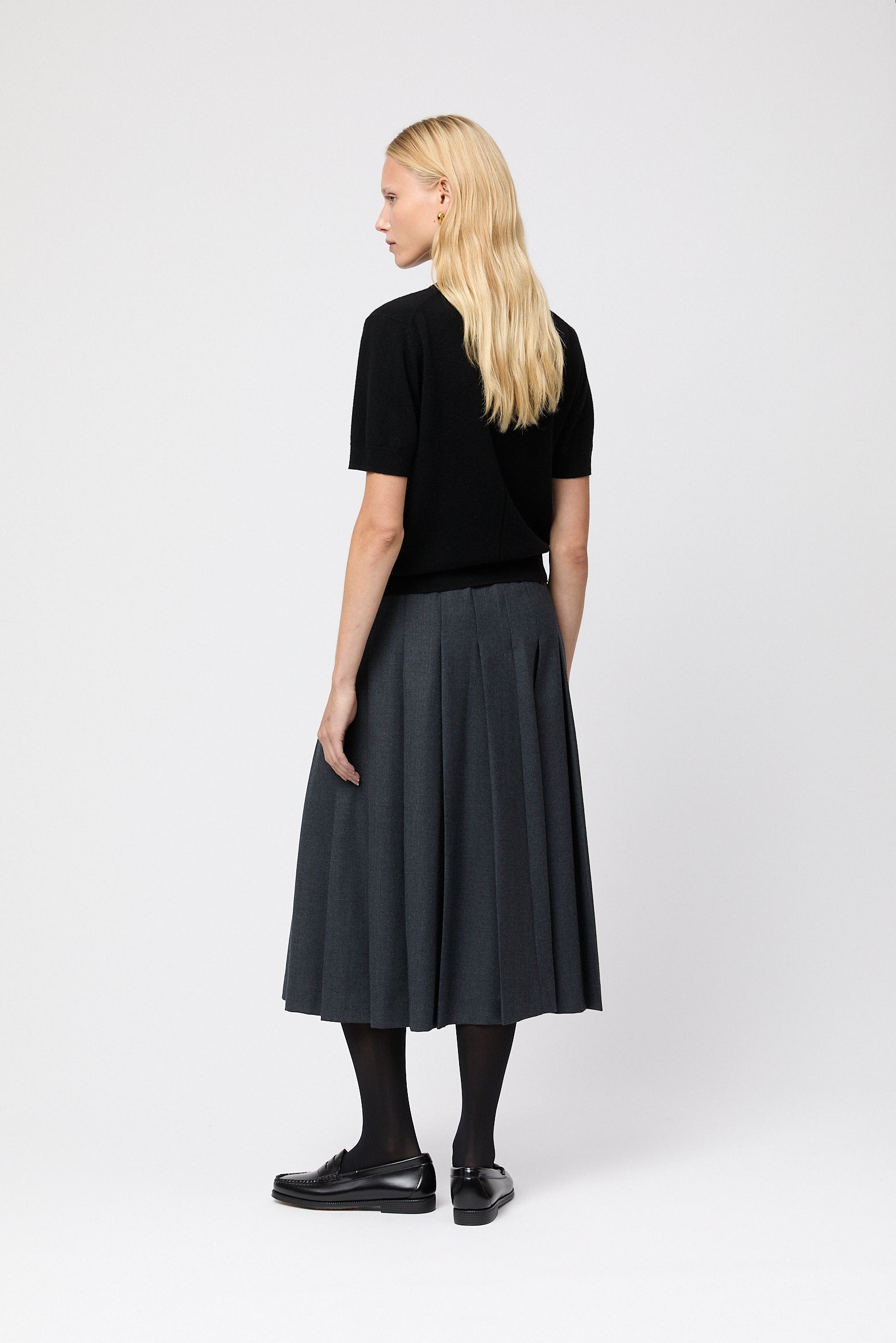 The FWSS Wool Pleat Skirt is a midi-length design in pure wool, defined by soft pleats that move with ease. Belt loops at the waist and an invisible side zip complete this clean, versatile style. Style with the Montauk Tee for a chic, 90s attire.